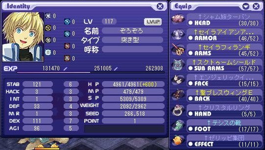 ・・・画像はLv117ですが、簡便してください。載せようとか考えてませんでした。