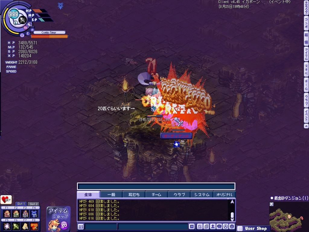 - 敵のHPが高いので、より多くのMOBをまとめないと時給が悪い。(集めすぎは事故死につながる)