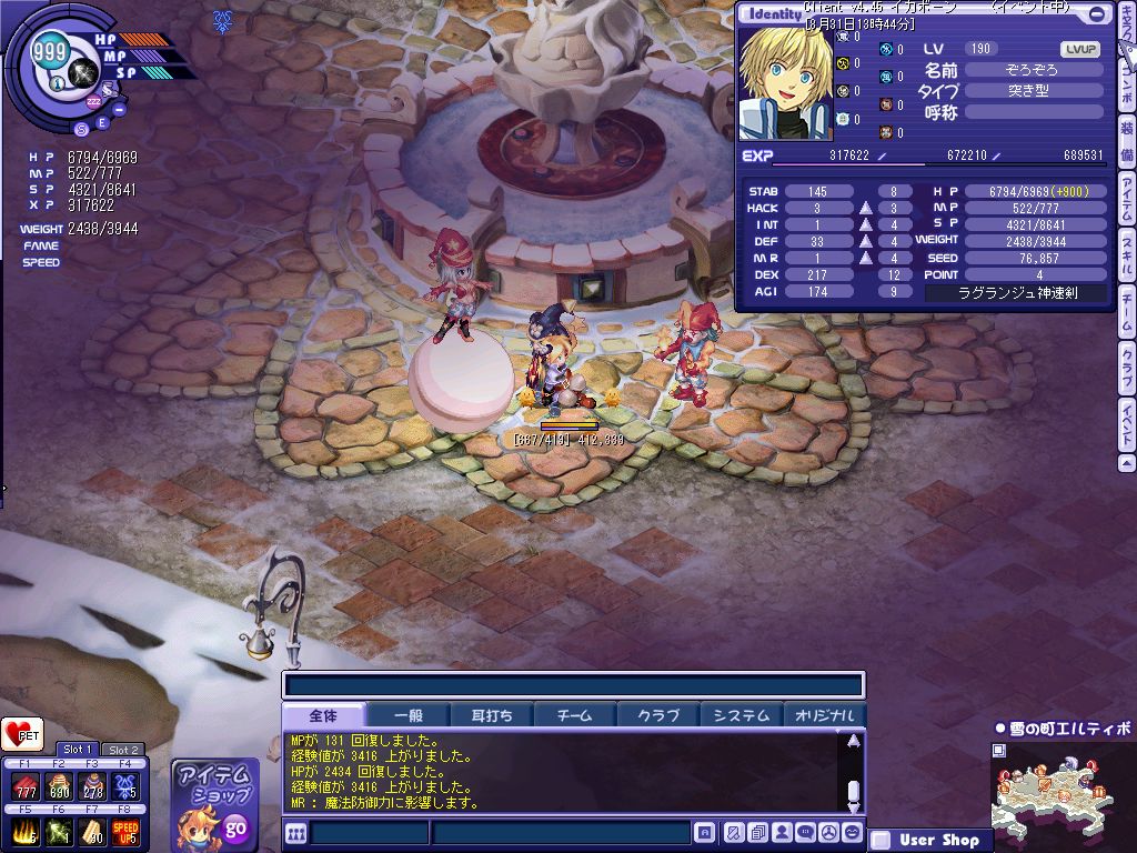 ということで混乱8で狩りをしてました。とても狩りやすいです。